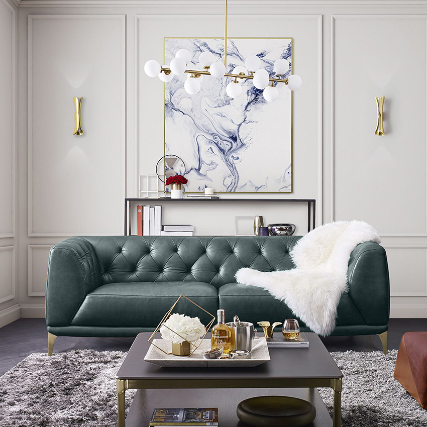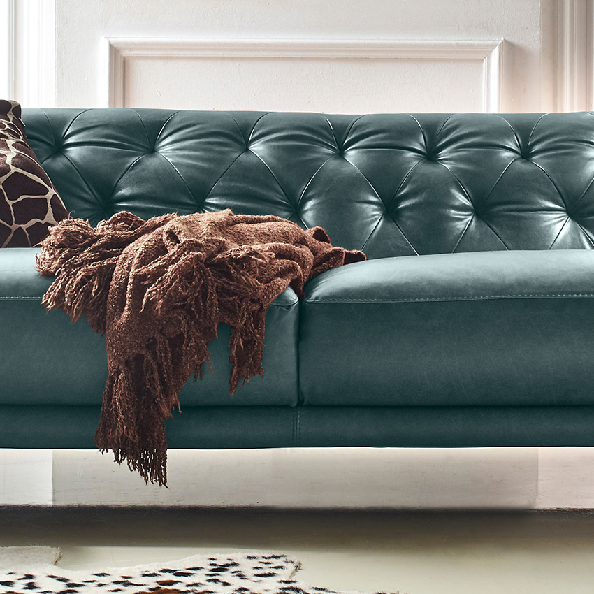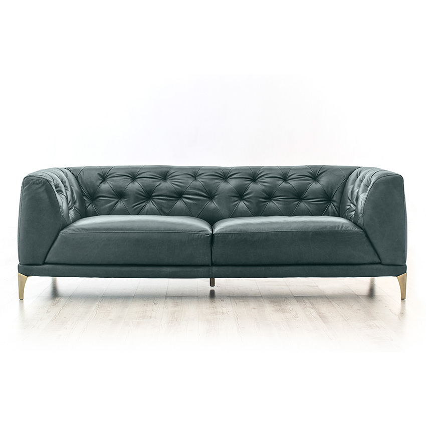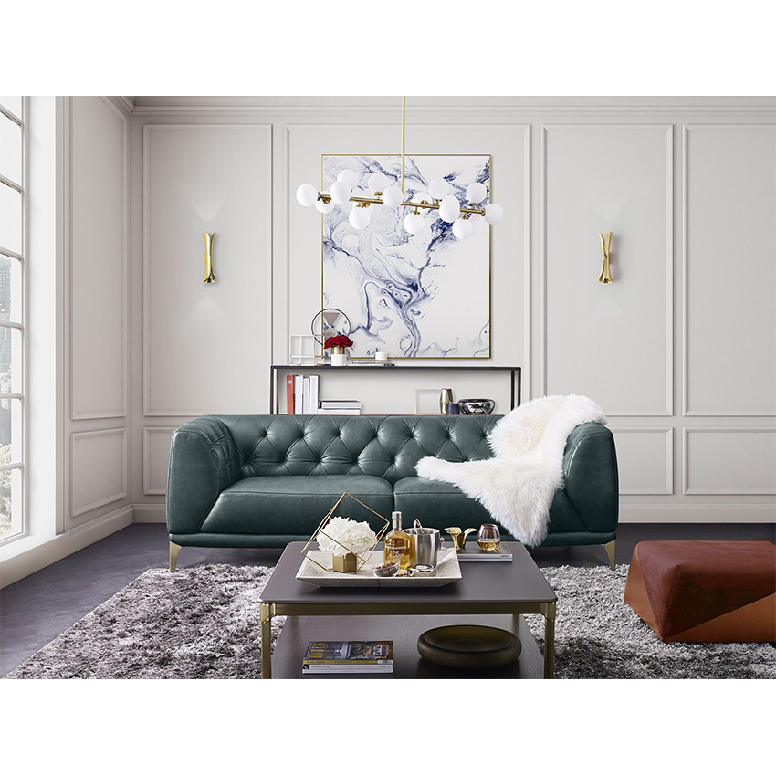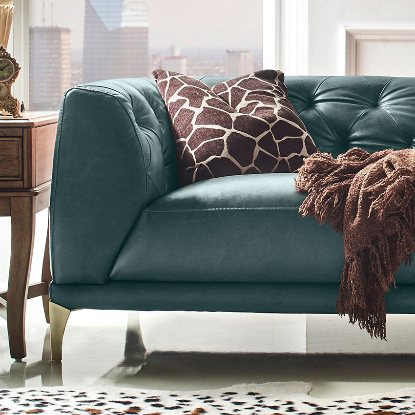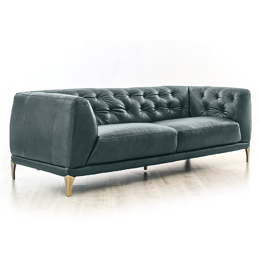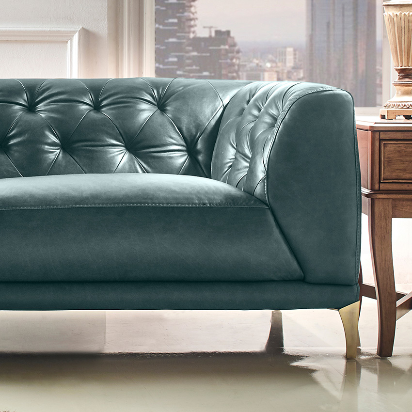 11810-GreenLeather Sofa