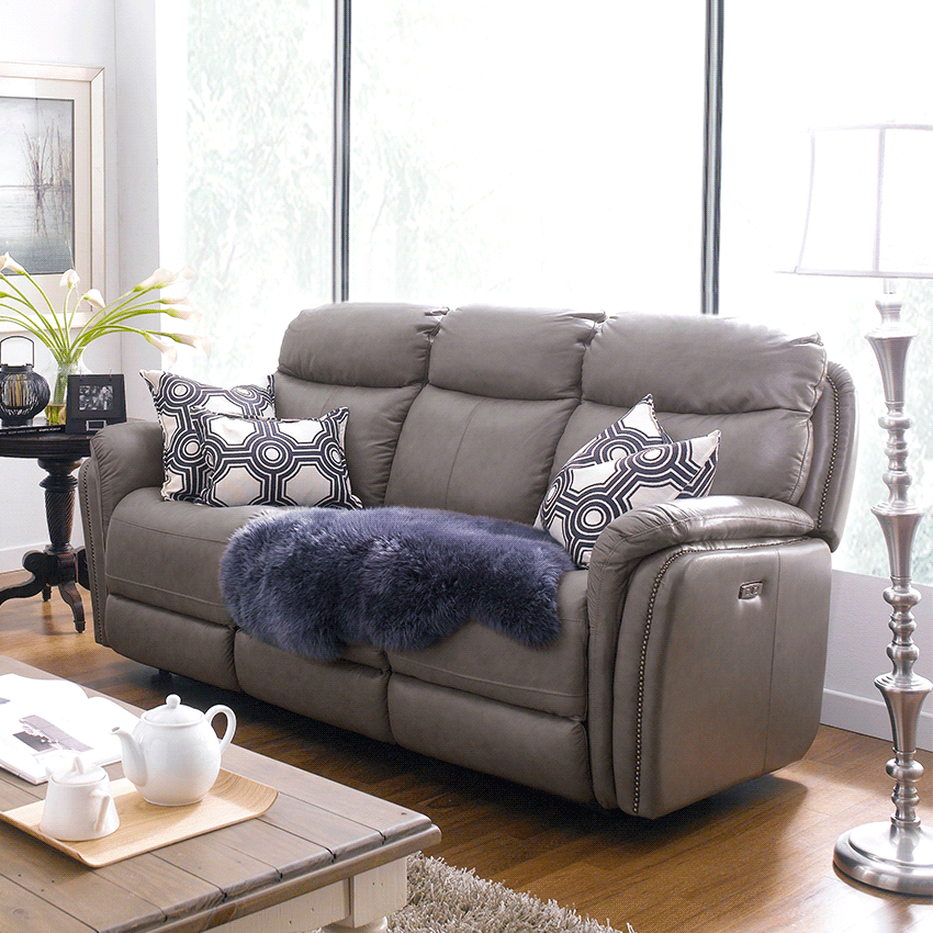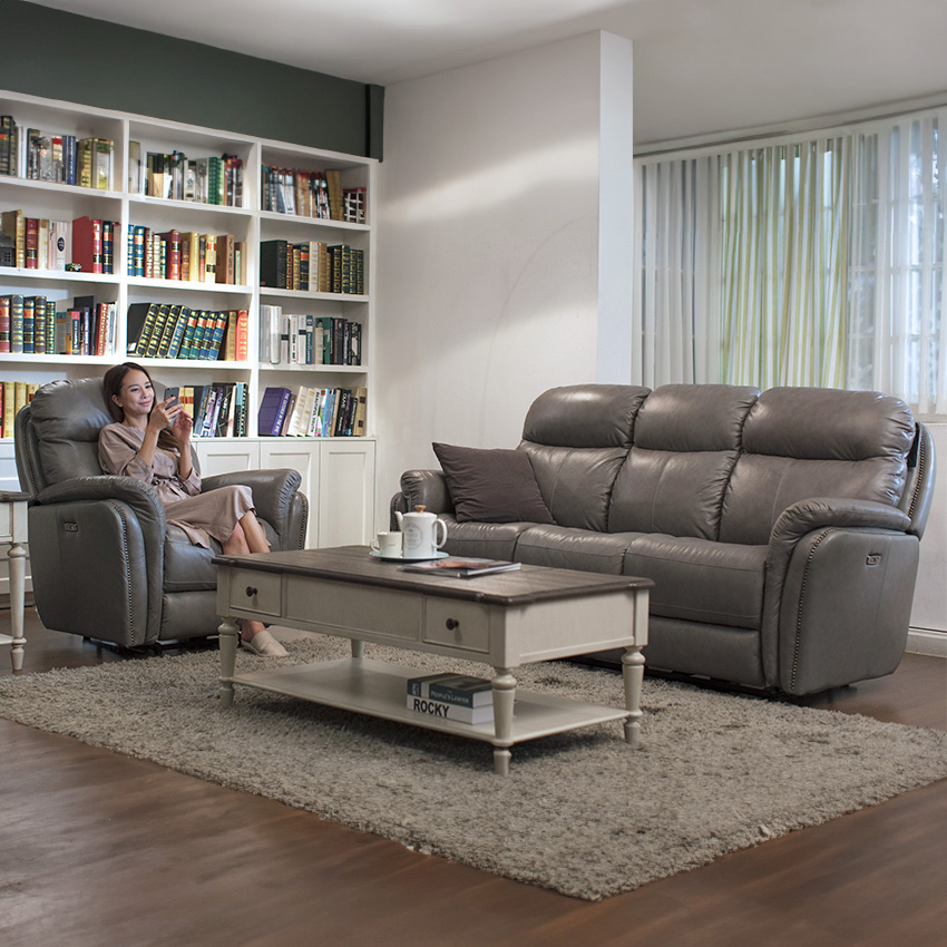 E1309-S-Grey Leather Recliner Sofa