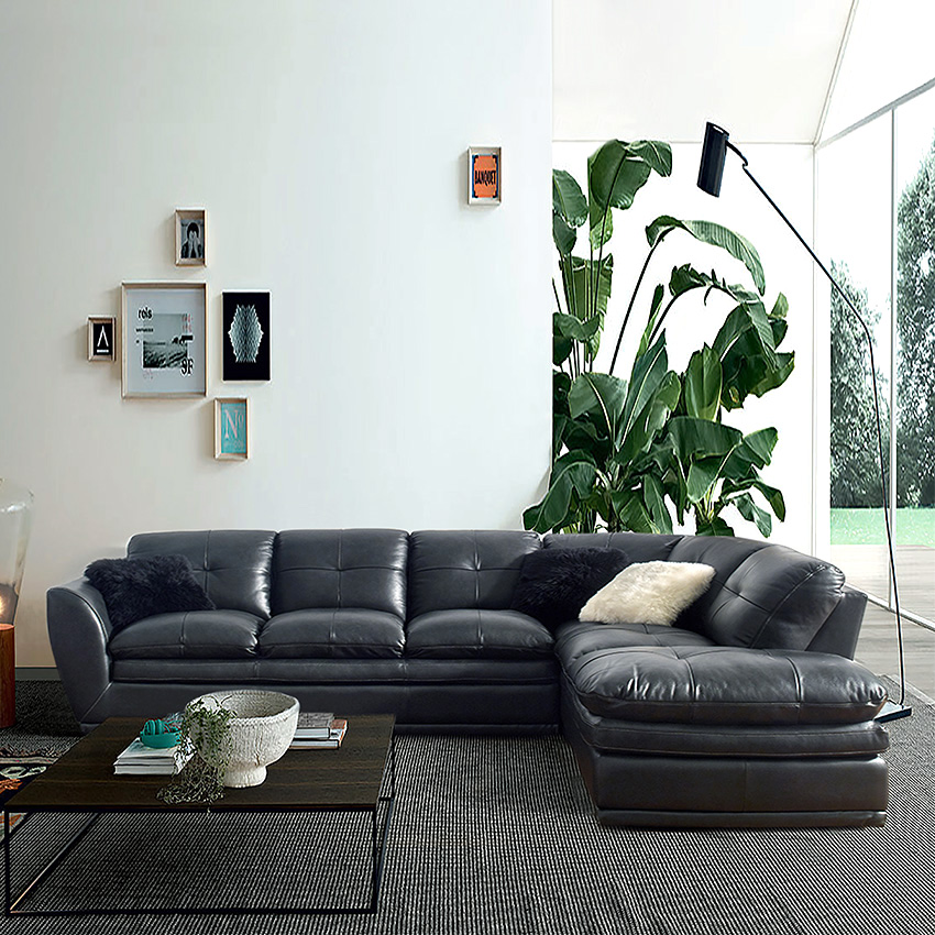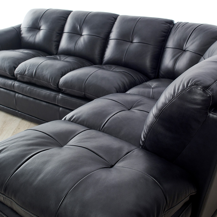 8188-MidnightLeather Chaise Sofa