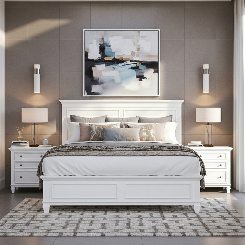 B5611-WHT Panel Bed (침대+협탁+화장대)