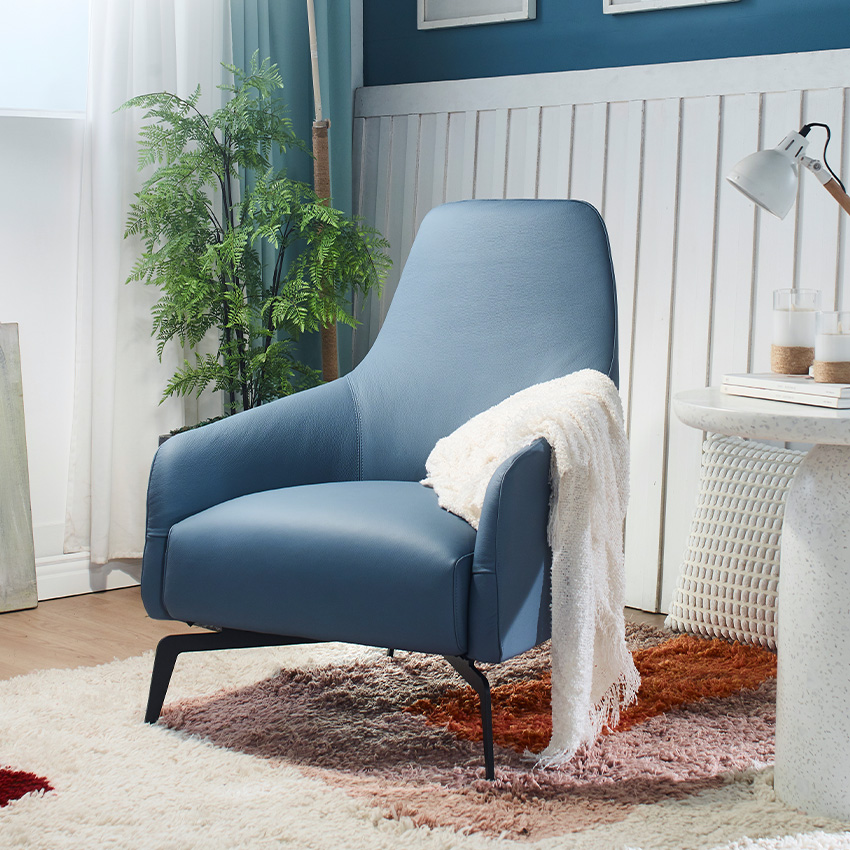 Columbus-Blue Leather Single Chair