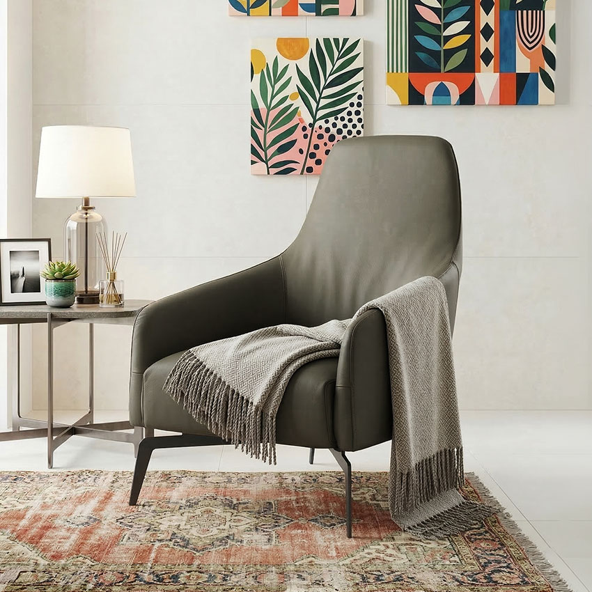 Columbus-Olive Leather Single Chair